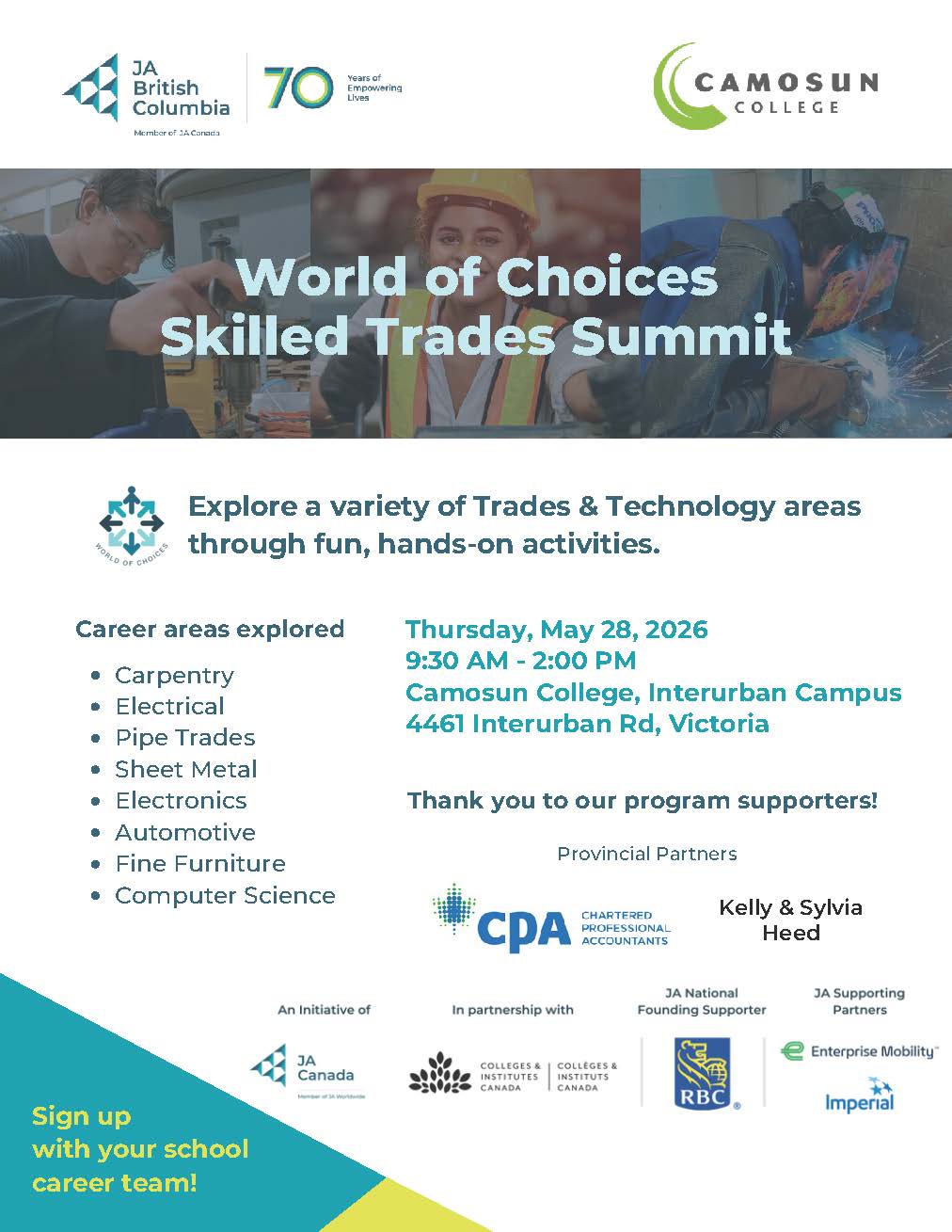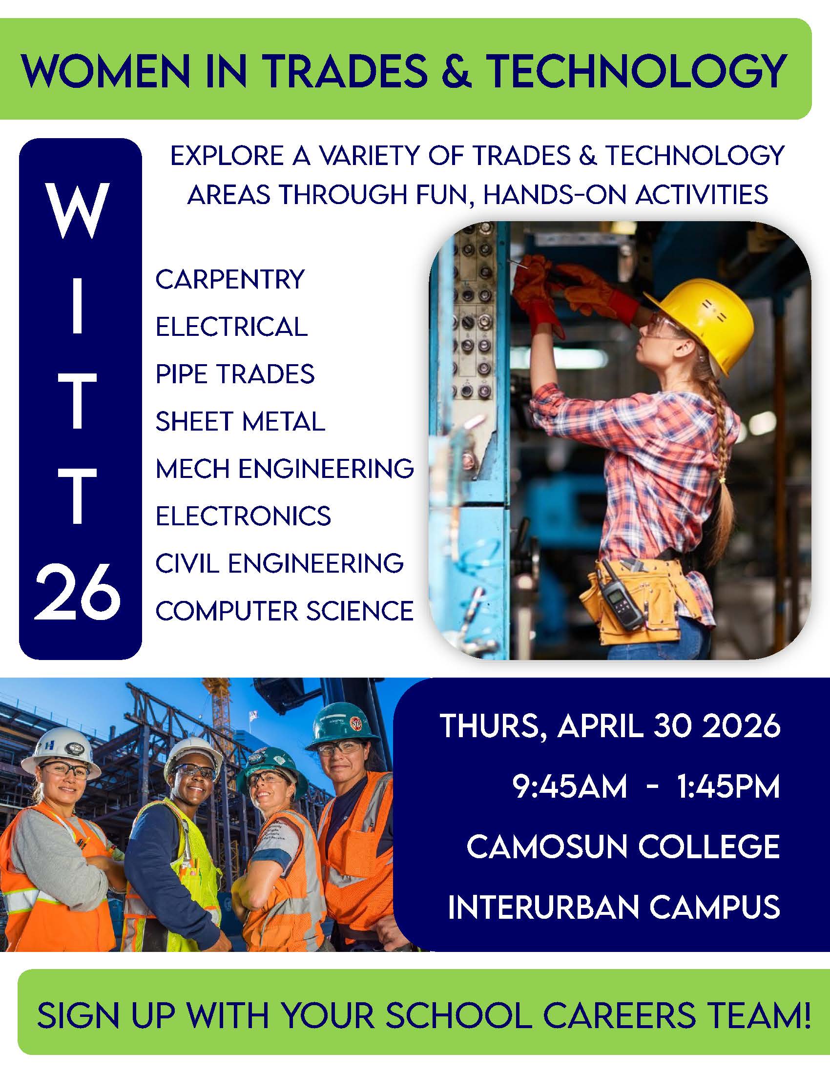 Trades Info Session – Feb. 26, 1 – 5 pm. Songhees Wellness Centre. For Indigenous students. Trades-Info-Session-February-26-Poster-1